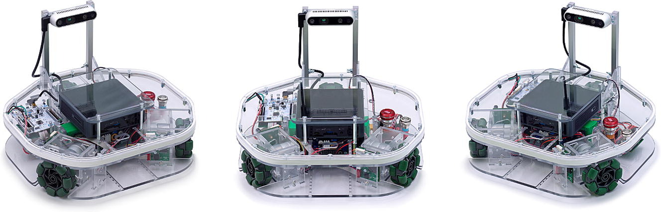 ROBOTONT is an mobile ground robot with omnidirectional wheels to enable rapid movement in any direction at a desired heading. The sensor system includes a depth camera which allows it to see like humans and map the entire environment in 3D. The powerful on-board computer facilitates running high performance algorithms and libraries. The software stack is open-source and based on ROS (Robot Operating System). Its literally transparent design, modular hardware, and open-source software offer endeless custiomization and extendibility options.